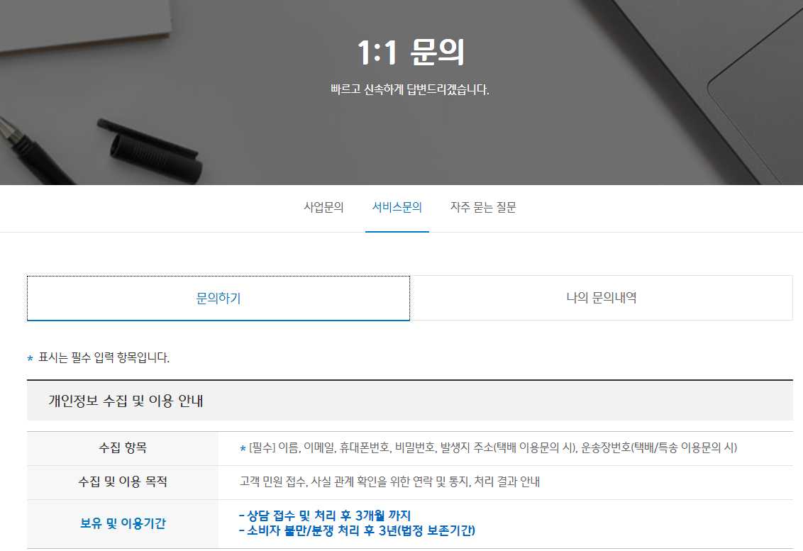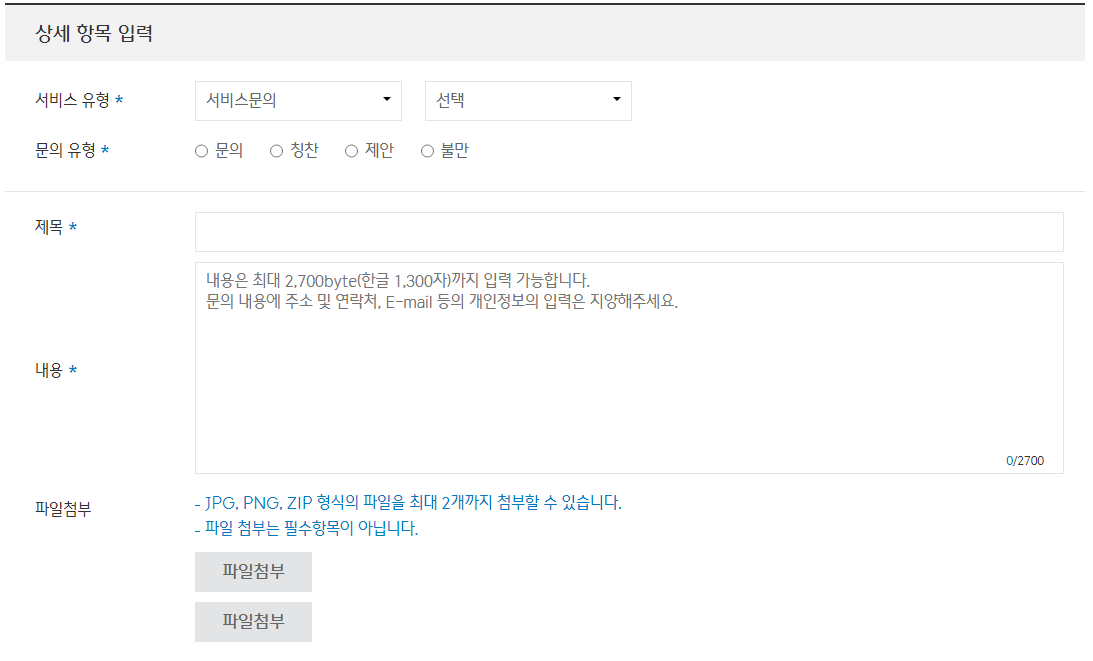 - 고객센터를 통해 안내받은 담당자 이메일로 필요 서류를 첨부하여 발송
