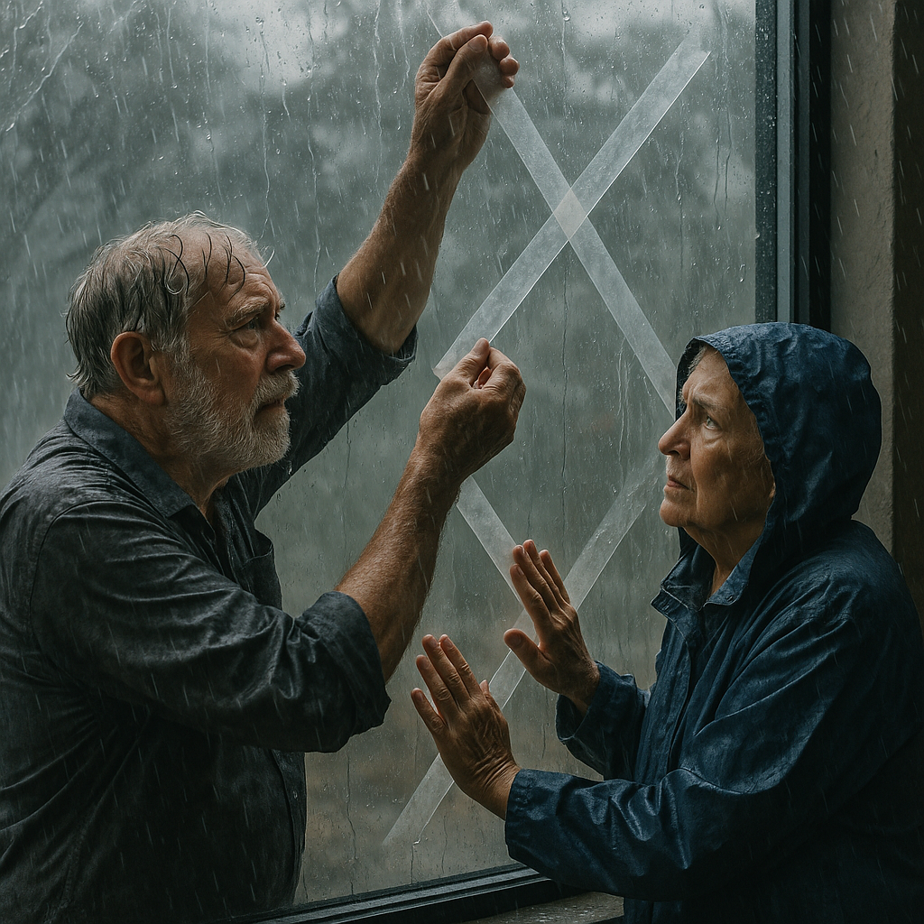 창틀이 제대로 잠겨 있는지 확인하고, 흔들리는 유리는 투명 테이프로 X자로 고정해두세요.