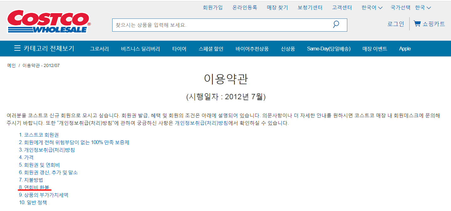 코스트코 연회비 환불 방법은 회원가입 후 유효기간 이내 회원으로서 만족하지 않을 경우 언제든지 회원권 연회비를 전액 환불 해준다고 합니다.