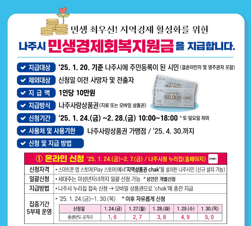 - 나주시 : 온라인 2월 7일까지 /오프라인 2025년 2월 28일까지