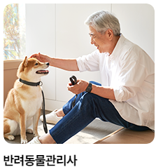 반려동물은 이제 동물을 넘어 가족의 일원이 됬습니다. 꾸준히 증가하는 반력동물 가정에서 반려동물의 탄생부터 죽음까지 사람과 동일한 관리가 필요합니다. 관리, 장례, 행동교정, 유치원, 시터, 푸드, 간식 등 다양한 부분에서 반려동물은 신규로 탄생한 다양한 직업들이 있습니다. 자격증 취득으로 새 시장에서 자신만의 경쟁력을 가질 수 있습니다. - 안전과정 [행정안전부, 산림청, 교육부, 경찰청]